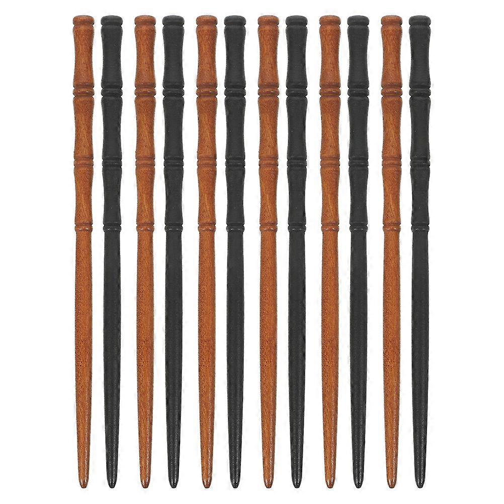 Decorative Hair Sticks Chinese Style Hair Chopsticks For Buns 12Pcs Black Wood