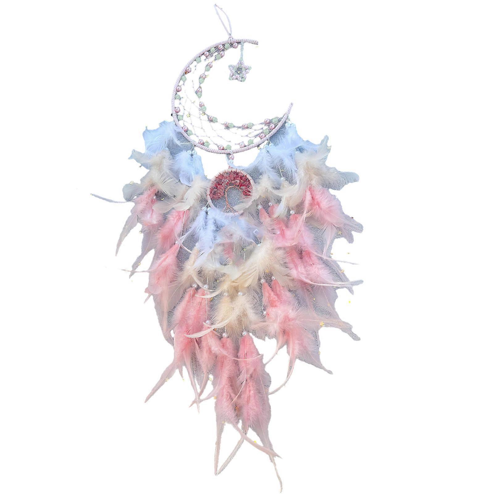 Decorative Ramadans Moon Star Glowing in Dark Dreamcatchers Feathered Tassels Windchimes Islamics Wall Hanging Ornament Pink