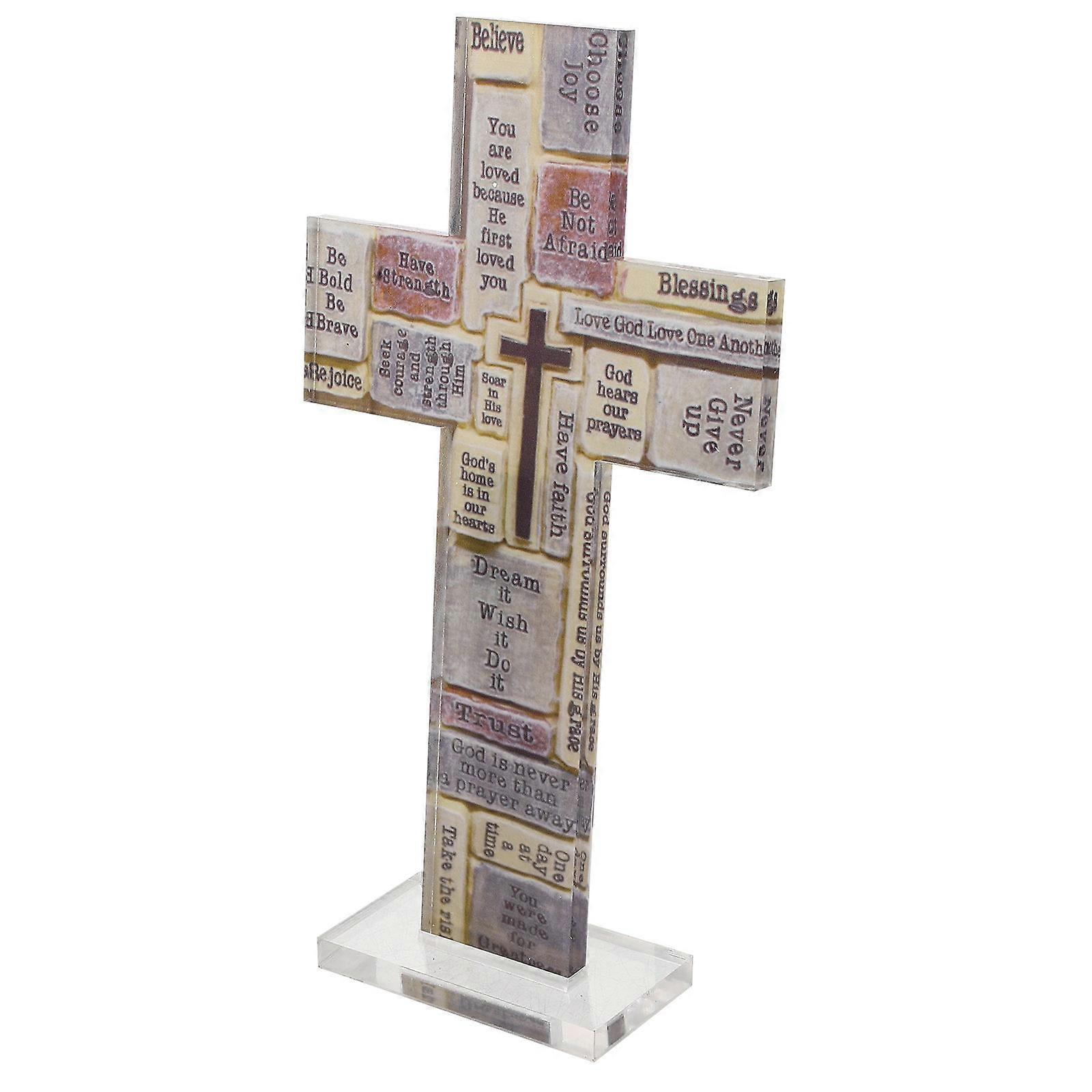 Decorative Crosses Wall Decor Creative Inspirational Acrylic Cross Table Cross with Inspirational Words Home Decoration 1Pcs