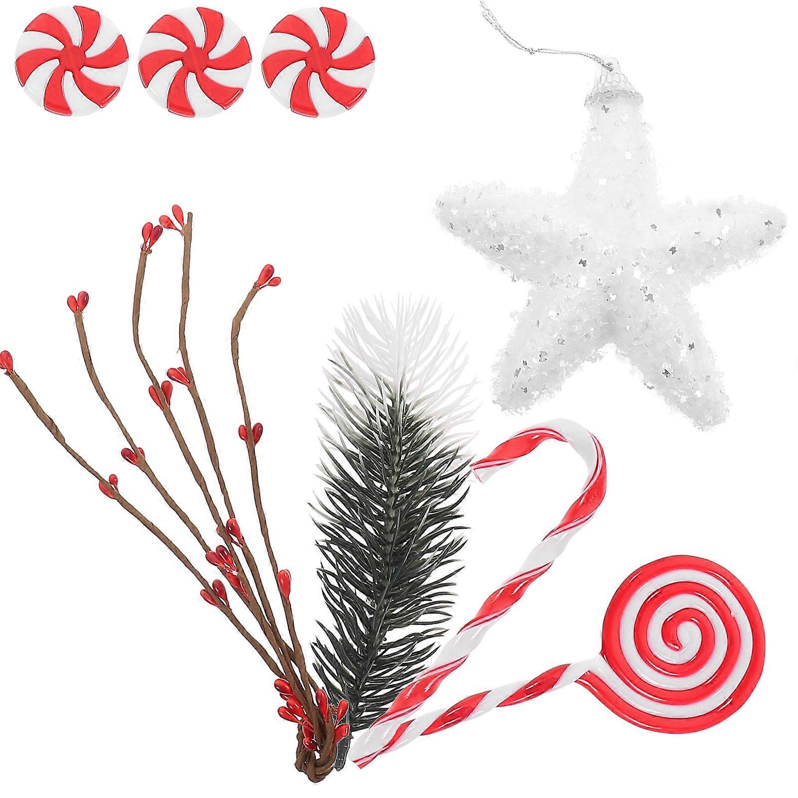 Decorative Hanging Ornaments Christmas Wreath Ornaments Simulated Pine Needle Berry Branch Candy Ornaments Christmas Indoor Decoration 1 Set