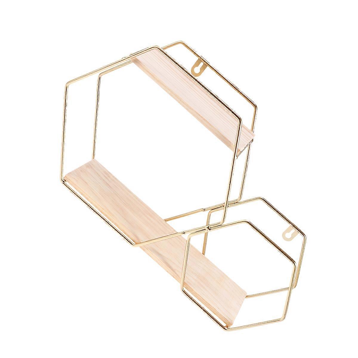 Decorative Wall Shelves Hexagon Floating Shelves Wall Iron Golden For Kitchen Balcony 39 x 27 x 10 Cm Large Capacity Storage 1Pack