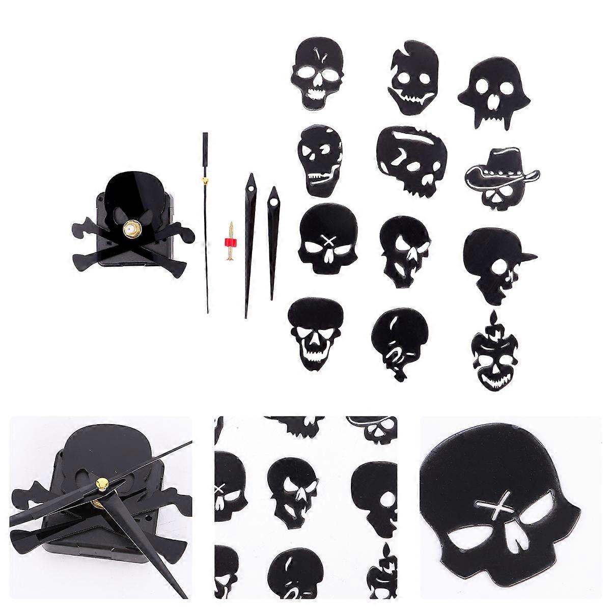 Decorative Wall Clock Skull Skeleton Diy Mirror Surface Wall Clocks Black 6X3cm Acrylic Diy Clock 1Set