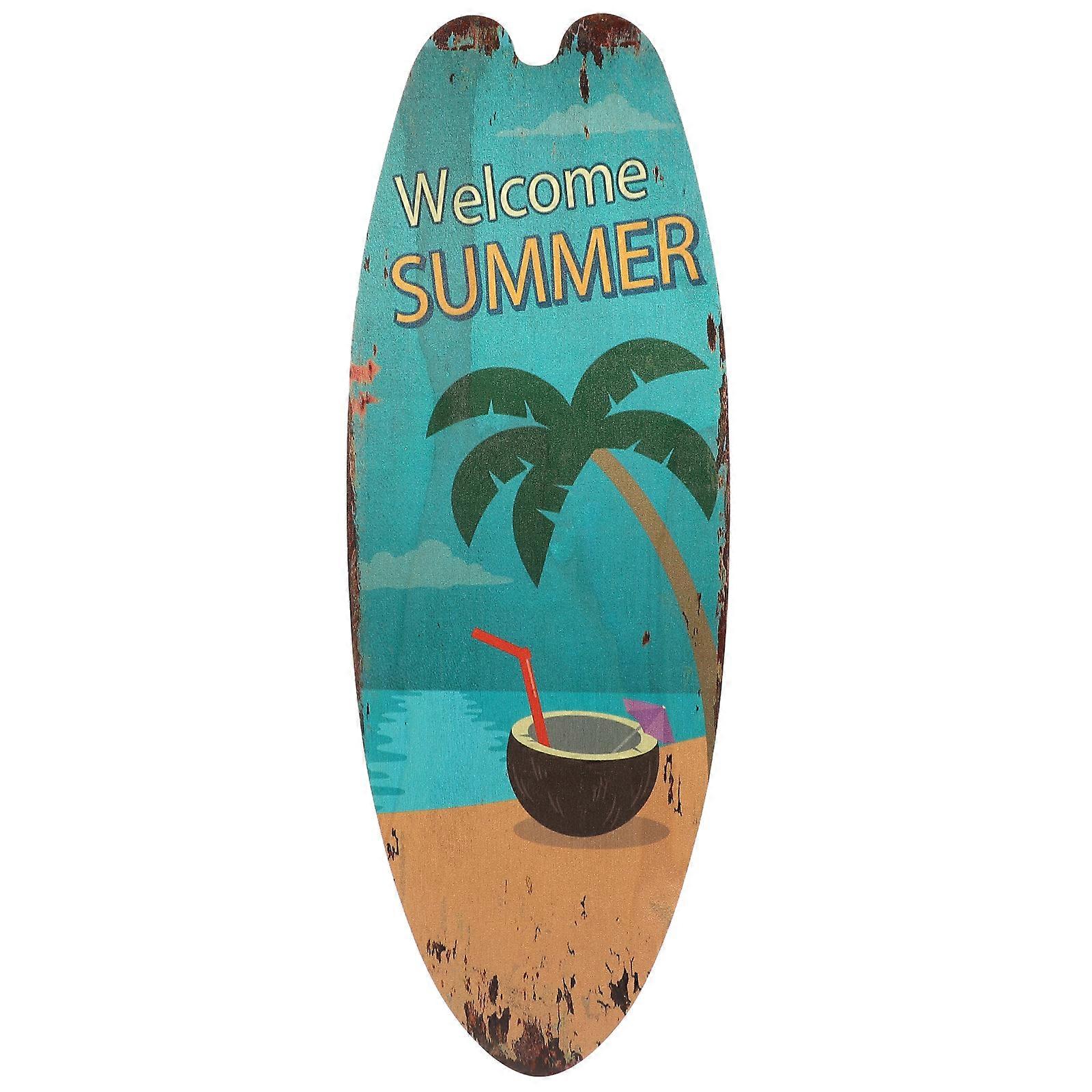 Description This summer theme wooden surfboard decor will make your house look better. The surfboard design look is funny. It is a wonderful decoration choice for living room, shop, dormitory, baby nursery, children's room, studio and more scenes. Features - Color: As Shown-Material:Wood- Size: 45.00X16.00X0.50cm/17.68X6.29X0.20in -Crafted from quality materials. This surfboard decoration for home is made from solid wood for guaranteed durability. It comes in pre-drilled design for easy installation. Hang it anywhere you want.-This wood surfboard home decoration is best for indoor use. It can also be used outdoors, but avoid direct sunlight and moisture exposure. -This surfboard decoration for wall is a great accent to any space. It's the perfect gift for family, friends, and coworkers who love the beach life. -Perfect as beach-themed decor, tropical, coastal, or Hawaiian inspired party props. -Delicate and attractive pattern makes this surfboard wall decor a perfect party layout prop to create happy atmosphere. Packing list: 1 x ornament