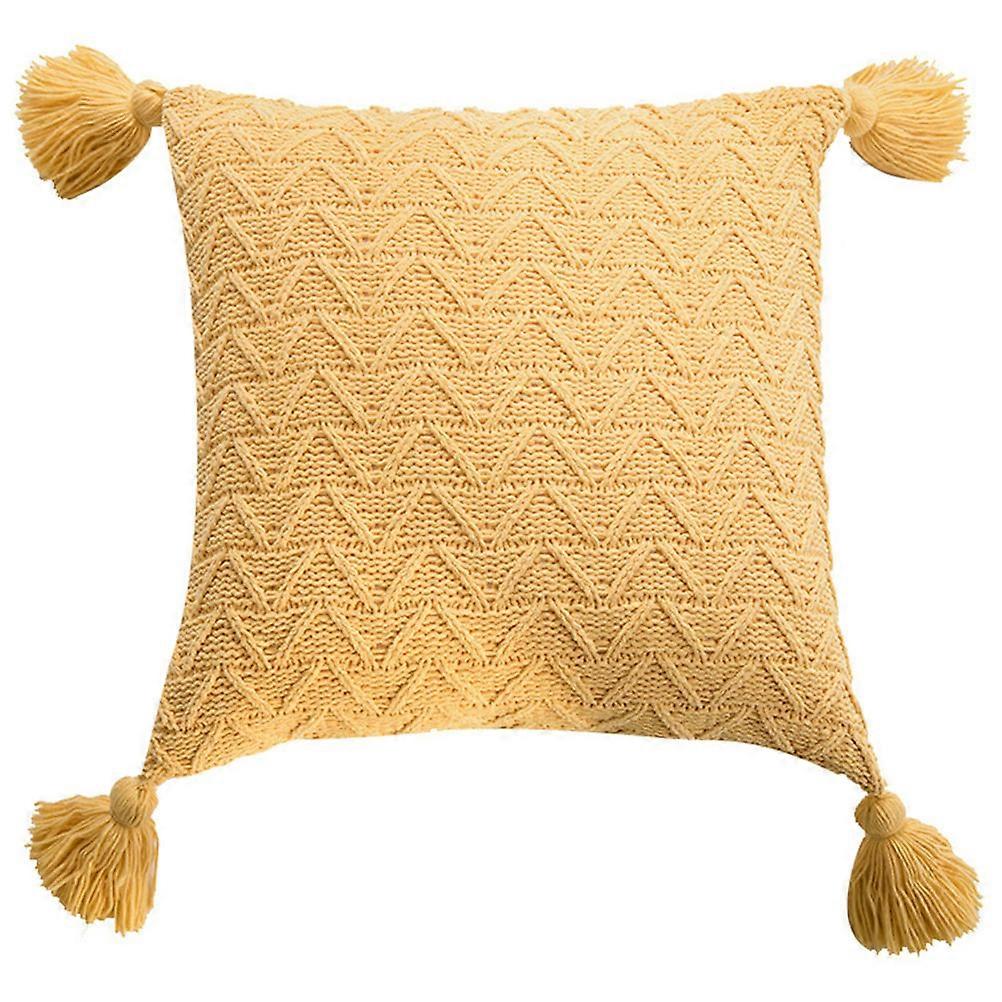 Decorative Pillow Cover Chenille Knitting Nordic Style Tassel 45x45cm Light Yellow Living Room 1Pc