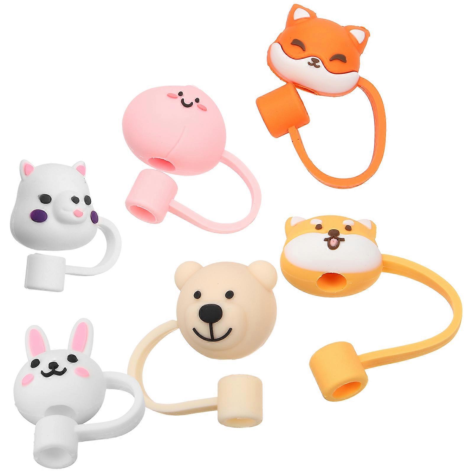 Decorative Cartoon Design Straw Tips Cover for Straws Outdoor Activities Silicone Non-Slip Easy to Fix 6Pcs