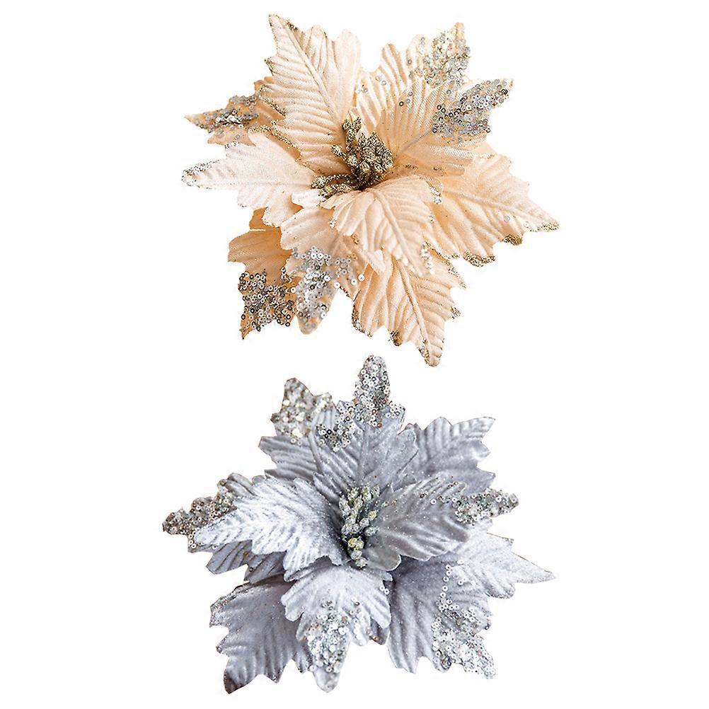 Decorative Artificial Flowers Classic Style Christmas Glitter Fabric Flower Shape 2Set