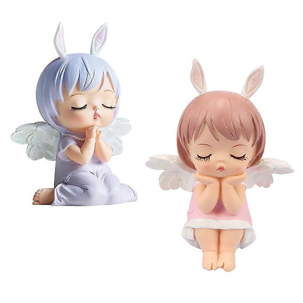 Decorative Figurines Angel Shape Cartoon Design Birthday Party Kids Room Decoration Resin 4.3×3.5×2.8in 2Pcs