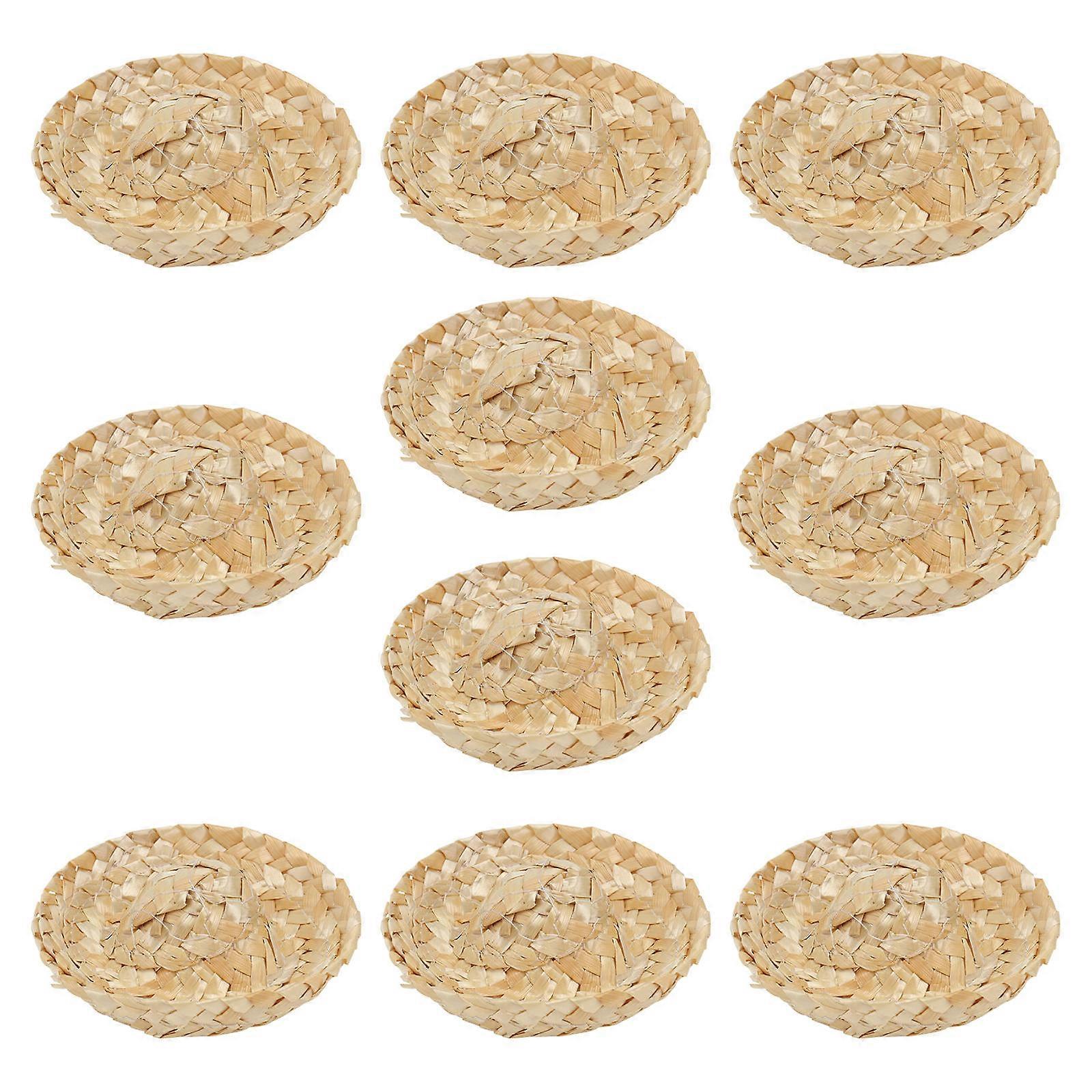 Decorative Straw Hats Mini Doll Hats for Decor 10Pcs Khaki Craft Supply