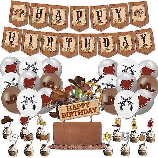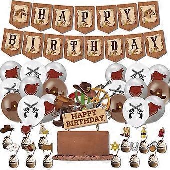 Western cowboy birthday decoration set, paper cake toppers and latex balloons, durable and reusable