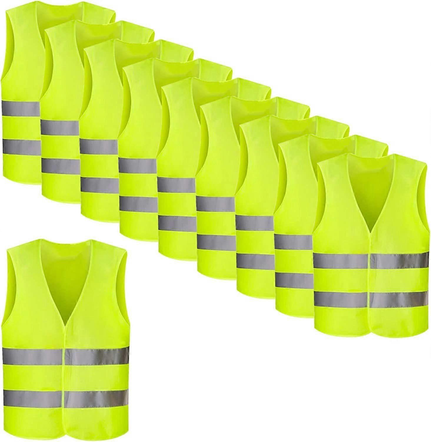 Pack of 8 high-visibility vests, neon yellow, reflective vest, accident vest, 360-degree reflective roadside assistance