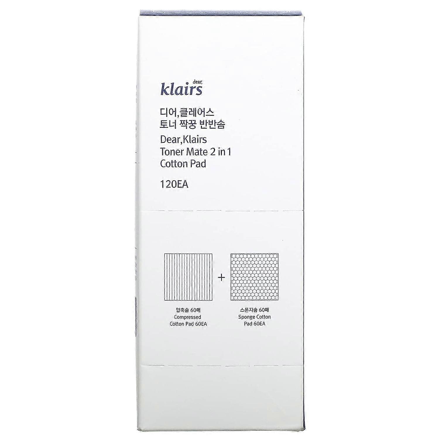 Dear, Klairs, Toner Mate 2 In 1 Cotton Pad, 60 Compressed/60 Sponge Cotton Pads
