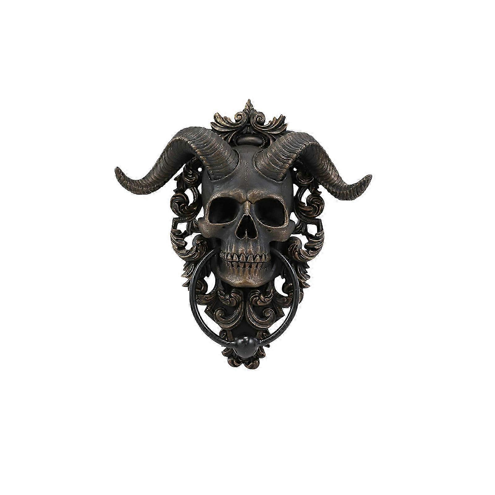 Horned God Skull Door Knocker - Gothic Wall Decor with Diabolical Horns