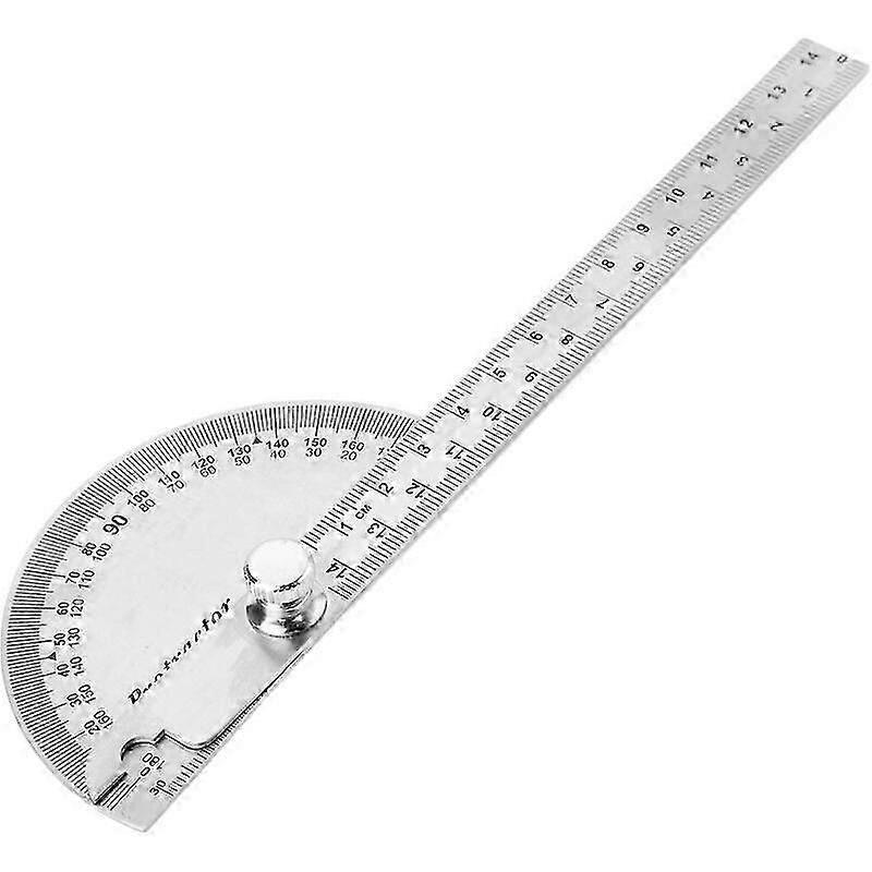 Description Angle Measurement Tool:2 in 1 with our clever idea of converging goniometer and ruler into a double scale from 0 to 180 degrees, measuring lengths from 0 to 15 centimeters. Protractor material: Polished stainless steel, brass locking nut. High quality stainless steel material resistant to durable work. Exquisite. Professional tool for drawing or measuring angles or lines. For drawing radial lines, setting bevels and transmitting angles. Adjust the suction cup by loosening the screw. Used to draw radial lines, skew and translate angles Protractor ruler alarm and dial head can be disassembled; perfect for school, business, home, mechanical work, woodworking, etc. Description: The protractor is made of sturdy stainless steel, permanently etched, durable and long lasting. Double division of 0-180 and 180-0 bi-directional mark and scale mark on bottom edge of semi-circular dial head. This protractor ruler has a 150mm adjustable straight ruler, which can be held in position with the knurled lock nut and can detect angles quickly and easily. The protractor of ruler is suitable for chamfering, drawing radial lines, measuring and marking angles. The protractor ruler alarm and the dial head can be disassembled; perfect for school, business, home, mechanical work, woodworking, etc. specification: Material: stainless steel Measurement: Double graduation from 0-180 180-0 degrees in two directions; 150mm/6 Protractor Ruler Use: Adjust bevel, draw radial lines, measure and mark angles Applications: school, commercial, home, mechanical and woodworking applications, etc. Size: 150mm, 0-180 degree rotation Package includes: 1 Protractor, 0-150mm Note: The data is manual measurement, please understand. please allow 1-123cm error, due to differences between light and screen, there will be a certain color difference, the specific received in kind prevail.
