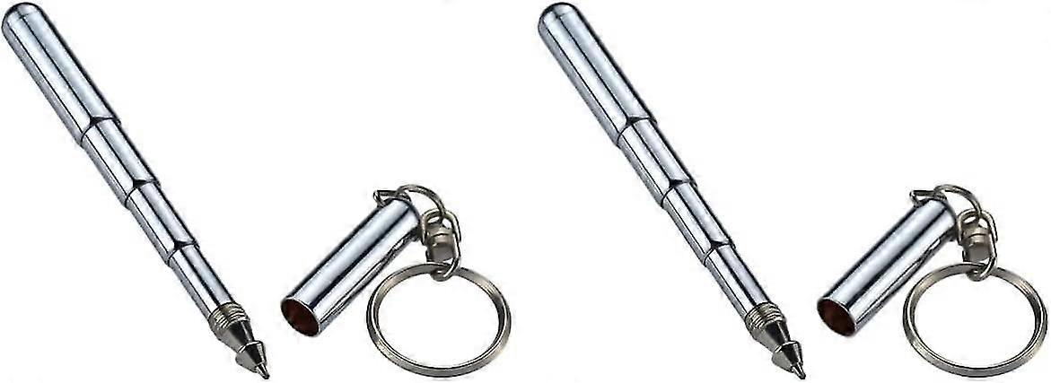 Refillable Telescopic Retractable Stainless Tiny Waitresses Keychain, Business Sliver Keyring Mini Adults Ballpoint(2pcs)