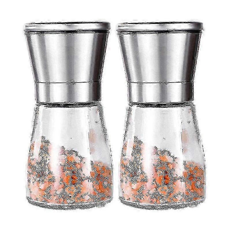 Refillable Glass Stainless Steel Salt & Pepper Grinder Set - ylmyFit Stylish Seasoning Mill with Adjustable Coarseness