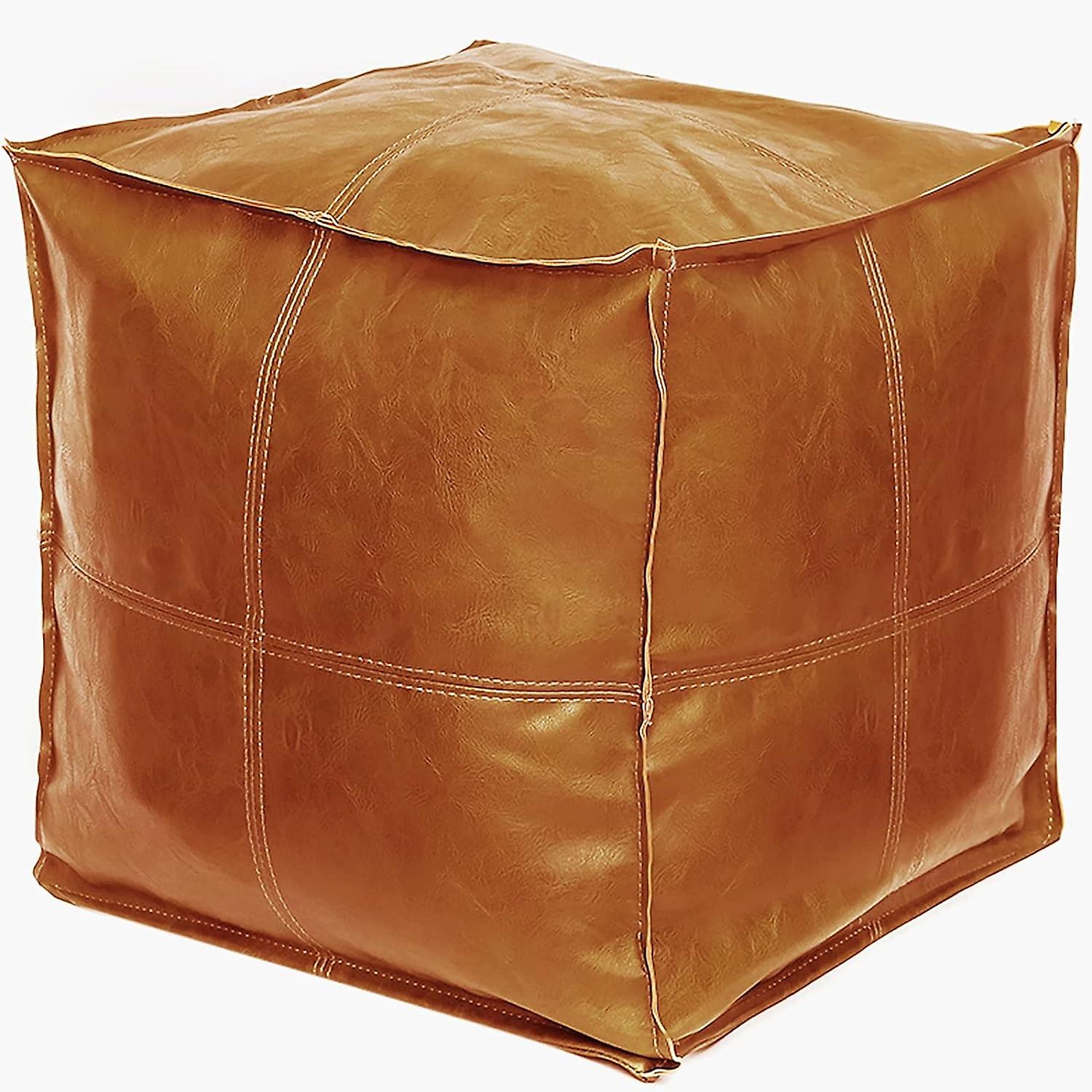 【FITS IN WITH ANY INTERIOR DESIGN】:From traditional decor to post-modern room decor, you'll love the warmth and softness that this design element brings to your decor. You'll notice the difference it brings to the appearance of the room When you use this ottoman. 【NO ODOR LEATHER POUF】:Square pouf is made using eco-friendly leather materials, no harmful chemicals are ever used in fabrication process. 【UNSTUFFED POUFFE】:Use fiber or using old clothes, old towels, old curtains, organic wool, old pillows filling. there is a zipper on the bottom to help you open and close and no need to sewin it. 【VERSATILE LEATHER POUF OTTOMAN】:You can enjoy this footstool anywhere in your home, it has been through a special process to ensure there are no smells. 【Perfect size】:17.7"x17. 7"x17.7"