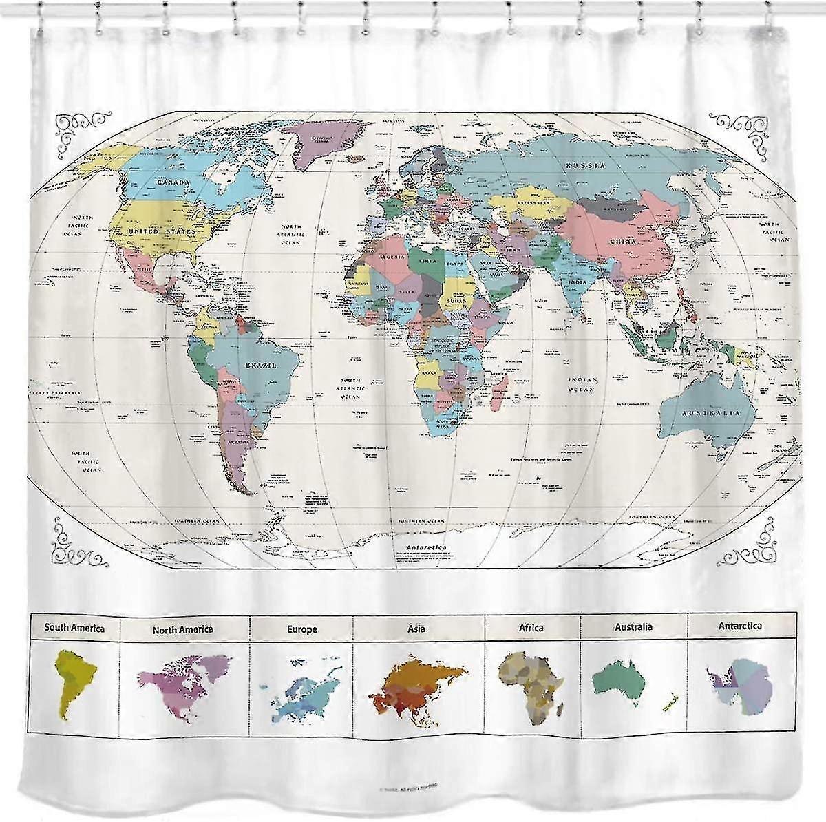 Map Of The World With Detailed Major Cities, Pvc Free, Non-toxic And Odorless Water Repellent Fabric Shower Curtain, Large Home Decor 70 X70inch
