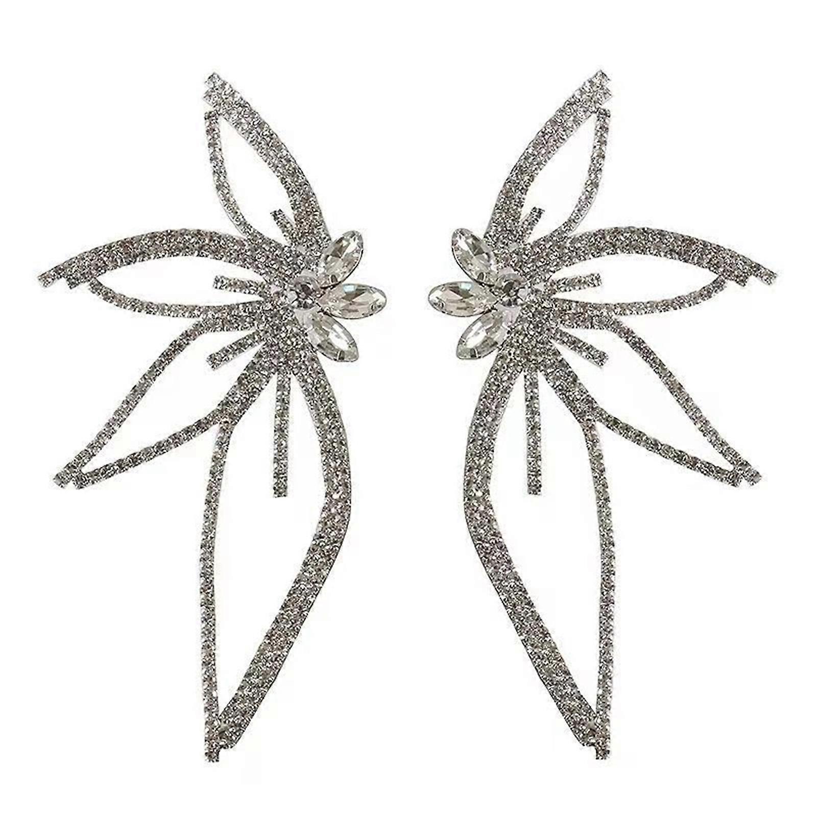 Exaggerated Flower Earring Sparkling Maple Leaf Flower Earrings Zircon Floral Shape Stud Ear Rings Ornament for Women
