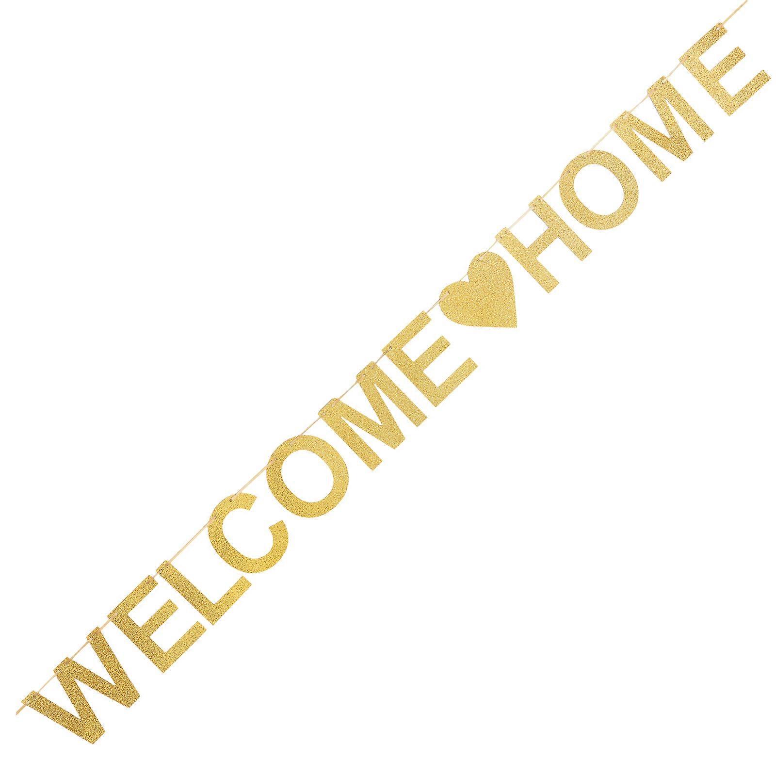 Elegant Gold Glitter Welcome Home Hanging Banner for Birthdays, Anniversaries & Outdoor Celebrations – Decorative Party Sign for Home Decor