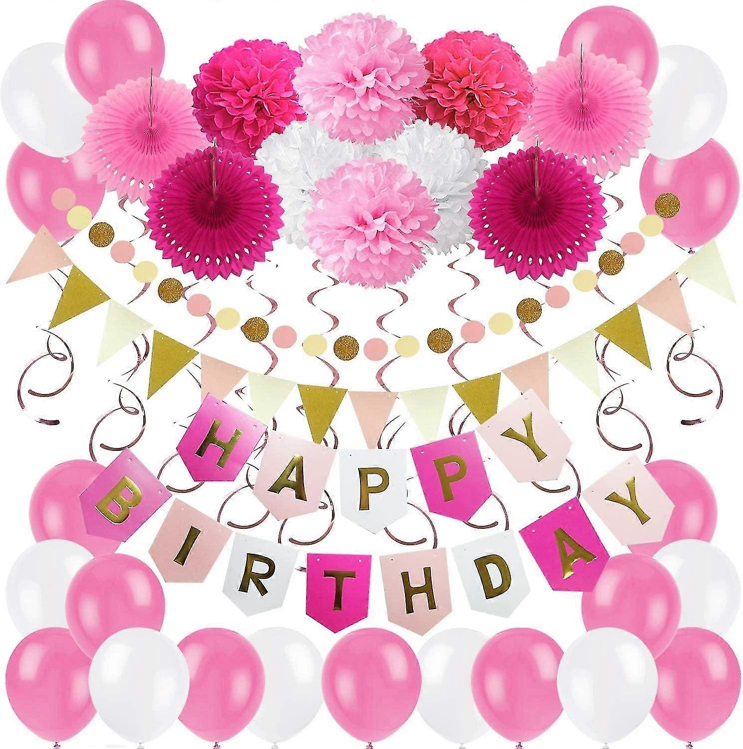 Birthday Decorations, Birthday Banner Party Decoration 43pcs Happy Birthday Banner, Pom Poms, Triang