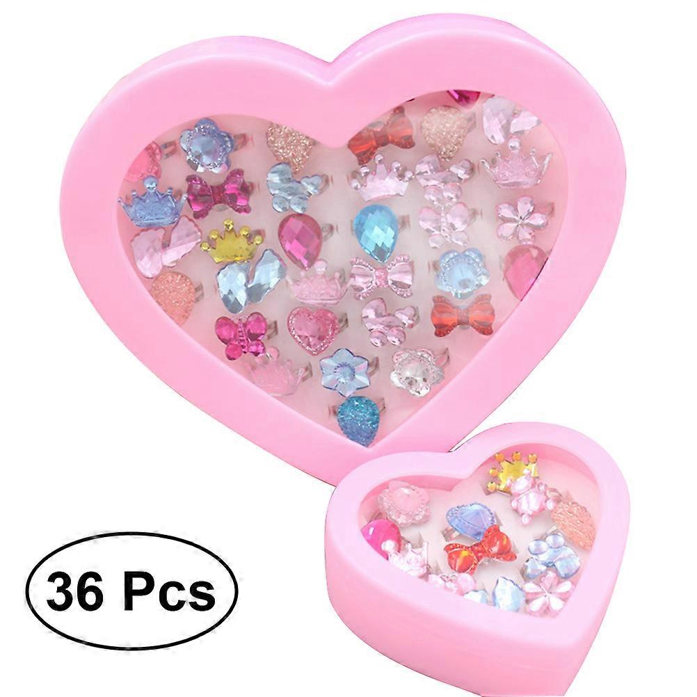 Heart Shape Display Case Containing 36Pcs Colorful Bowknot Rings For Kids Jewelry Set Decoration At Birthday Parties