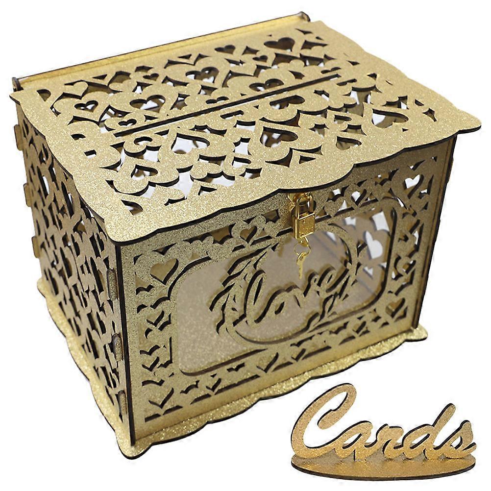 Money Storage Wooden Card Box For Birthday Party And Anniversary 1Set Golden