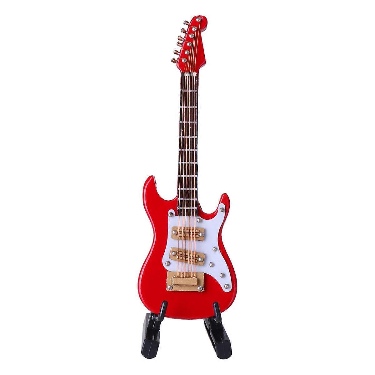 Portable Guitar Electric Guitar Decor For Birthday Party Red 10x3.5x1cm Instrument Decor Wood Plastic 1Pack