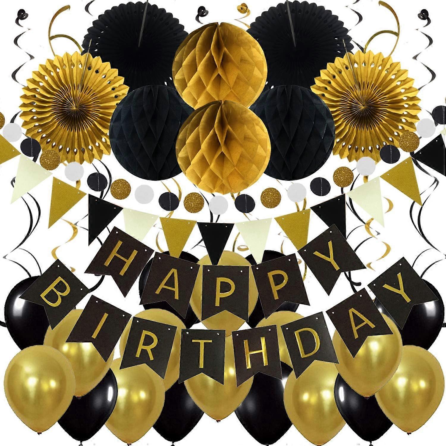 Birthday Party Decorations, Happy Birthday Banner with Paper Fan, Honeycomb Balls, Triangle Pennants, Circle Paper Garland, Hanging Swirls and Balloon