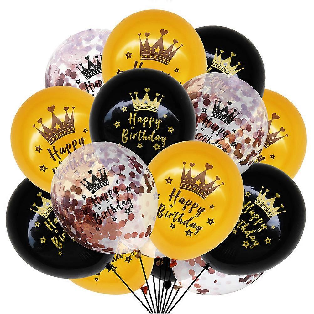 Are you still worrying about the layout of your birthday? This sequined birthday balloon suit is suitable for birthdays of all ages. It is very and of date. Perfectly match any other scene. They are manufactured with quality latex material, and to use. Features -Material: Latex. - This balloon set is perfect for any birthday theme . - Made of , for use, easy to inflate and deflate, no fading. - You can put them on you like, for example, bedroom for kids, fireplace, living room, wall and outdoor. - Decorative with these balloons now, , your kids will love them so much. - They are printed with "Happy Birthday" and Crown pattern, chic and . Package list: 5 x 12inches (About 2.8g) golden crown latex balloons 5 x 12inches (About 2.8g) black crown latex balloons 5 x 12inches (About 4g) transparent number latex balloons