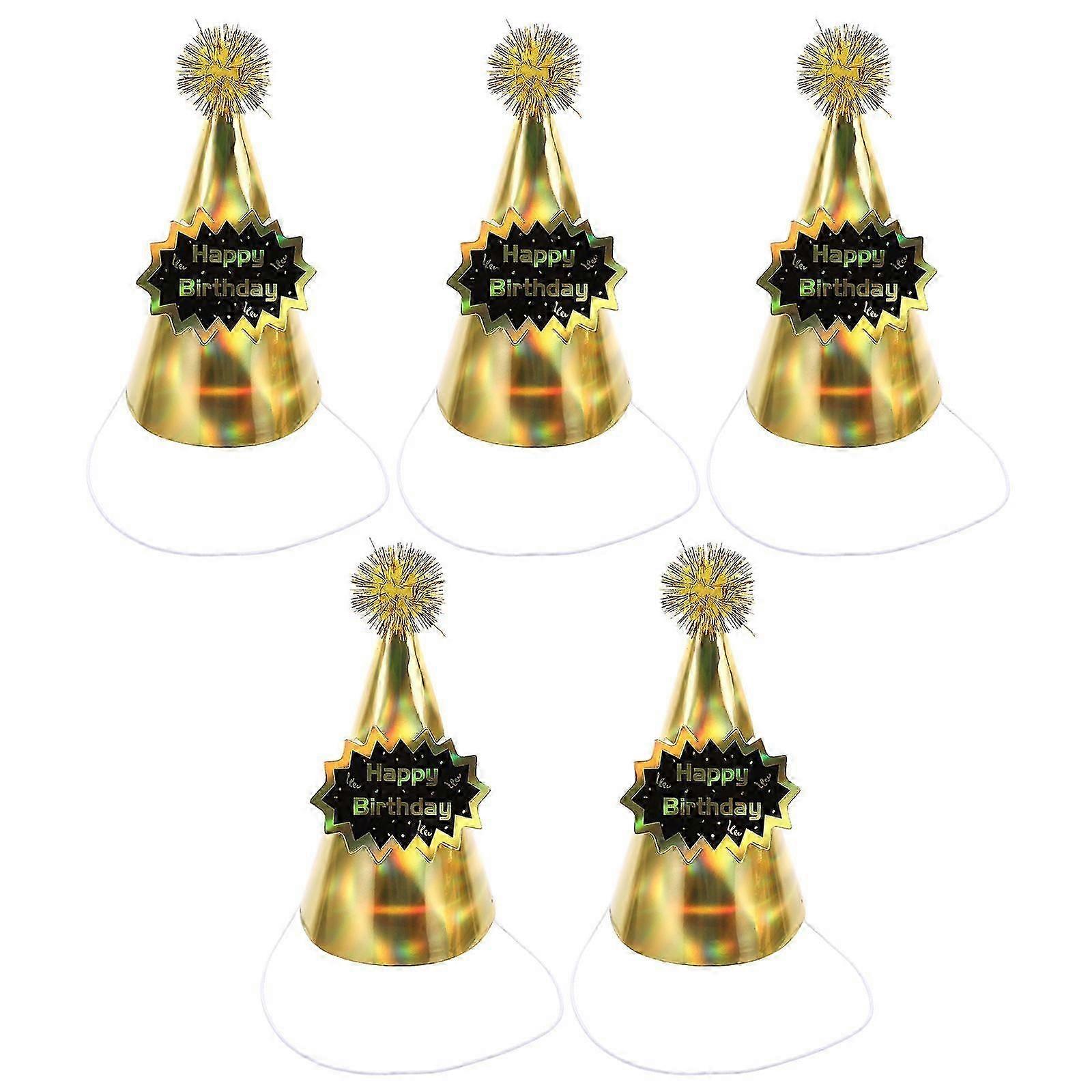 Birthday Party Cap Paper Party Hats Golden 18x10.5cm Party Atmosphere Enhancement 5Pcs
