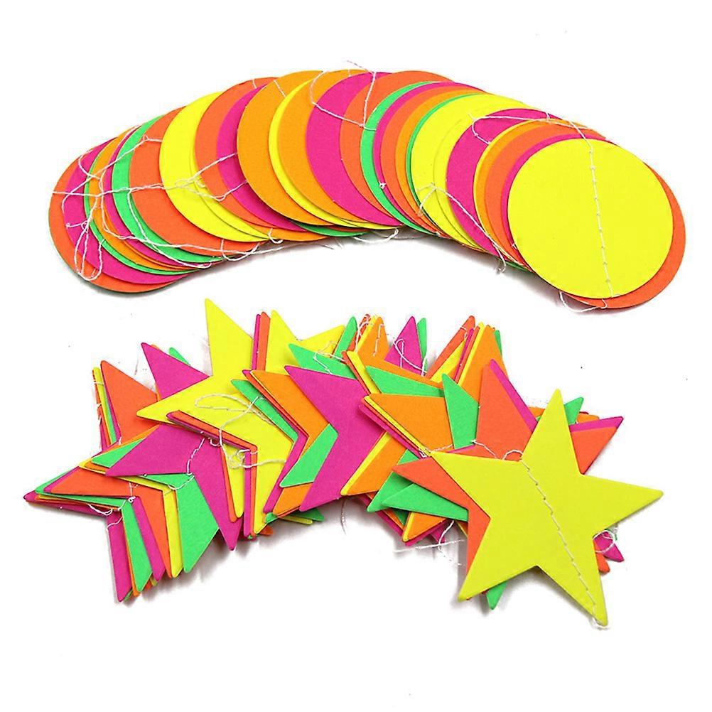 Birthday Party Banner Fluorescence Paper Garland Round Star Pendant Decoration 4.4M Length
