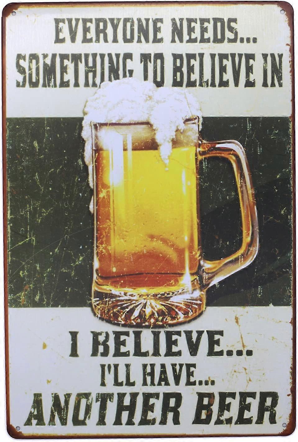 Everyone Needs Something To Believe In I Believe I'll Have Another Beer Metal Retro Tin Sign, Fun Saying Poster Antique Plaque Kitchen Bar Pub Home Wa