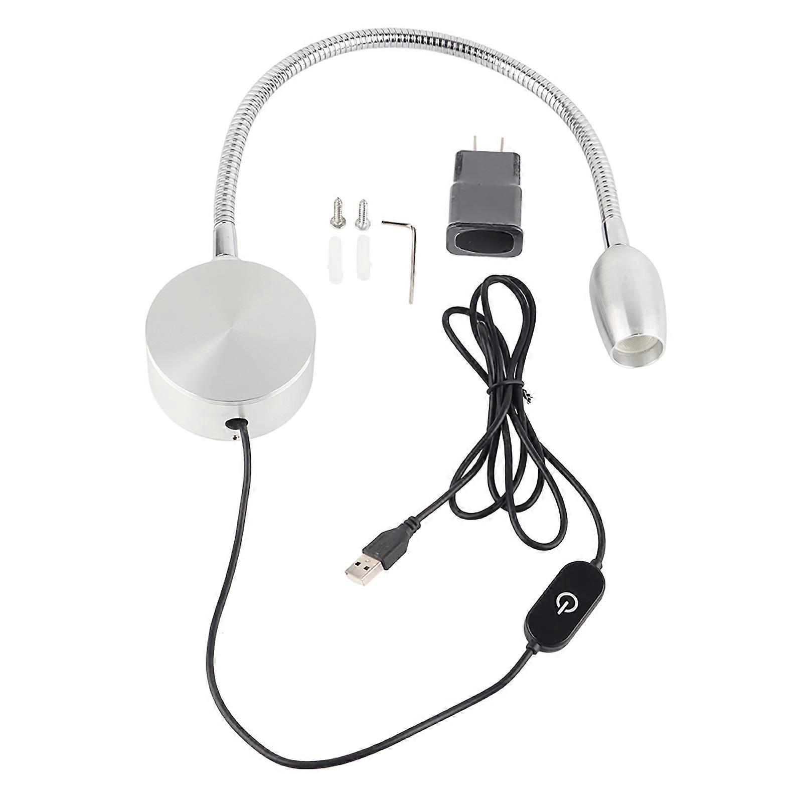 Dimmable Reading Light Wall Mounted, Flexible Gooseneck LED Sconce Lamp with USB Charger Function, For Bedroom Hotel Study Room Office, Efficient
