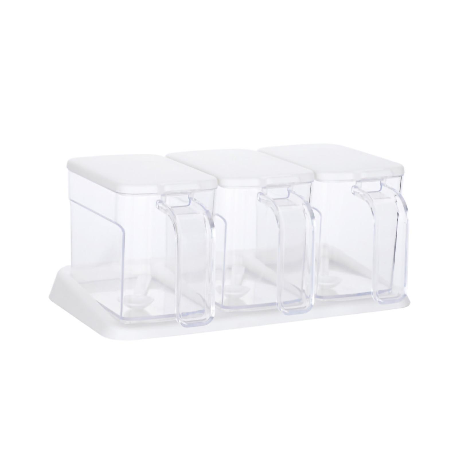 Seasoning Box Set Plastic Clear 3 Grids Large Capacity Condiment Box with Spoons for Kitchen