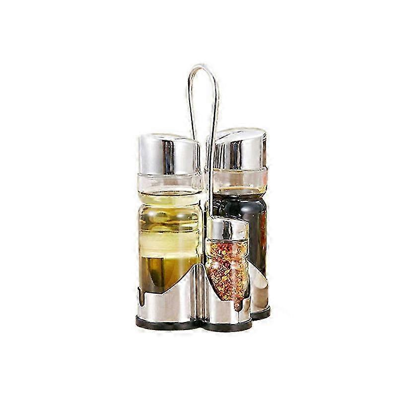 Seasoning Bottle Set Condiment Holder Seasoning Rack Four-in-one Oil Vinegar Dispensers Salt Pepper Shakers Glass Cruet Set With Convenient Caddy Stan