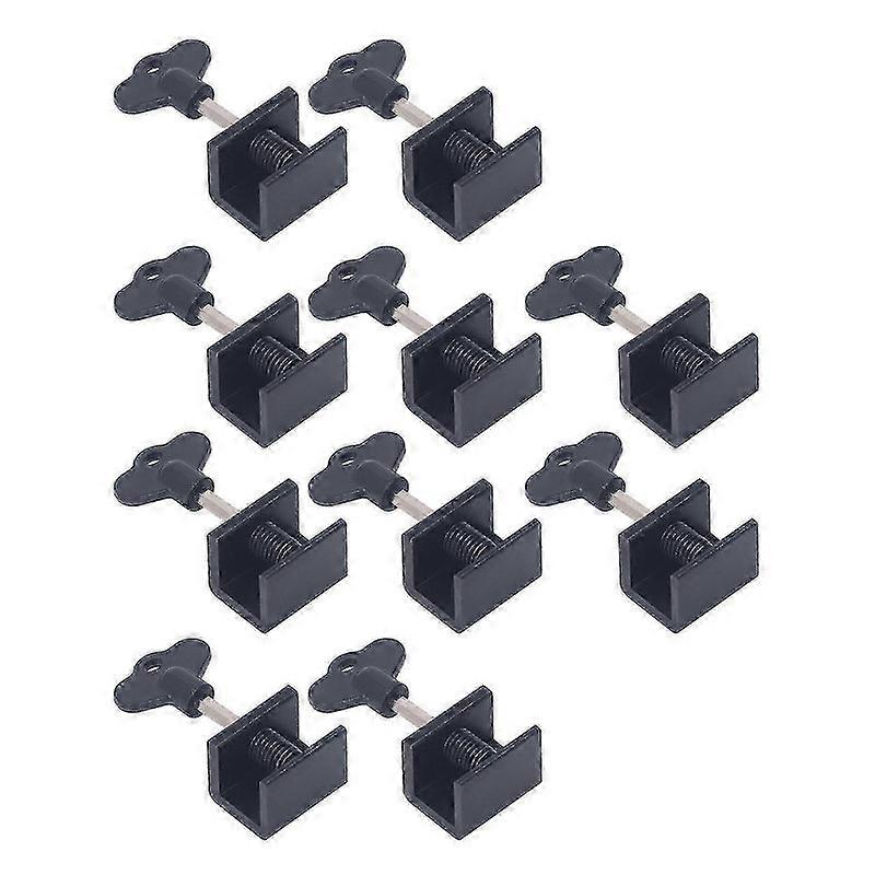 Adjustable Window Locks Kit - 10 Sets Single Hole Sliding Locks with Wrench Key for Vertical and Horizontal Windows - Black--
