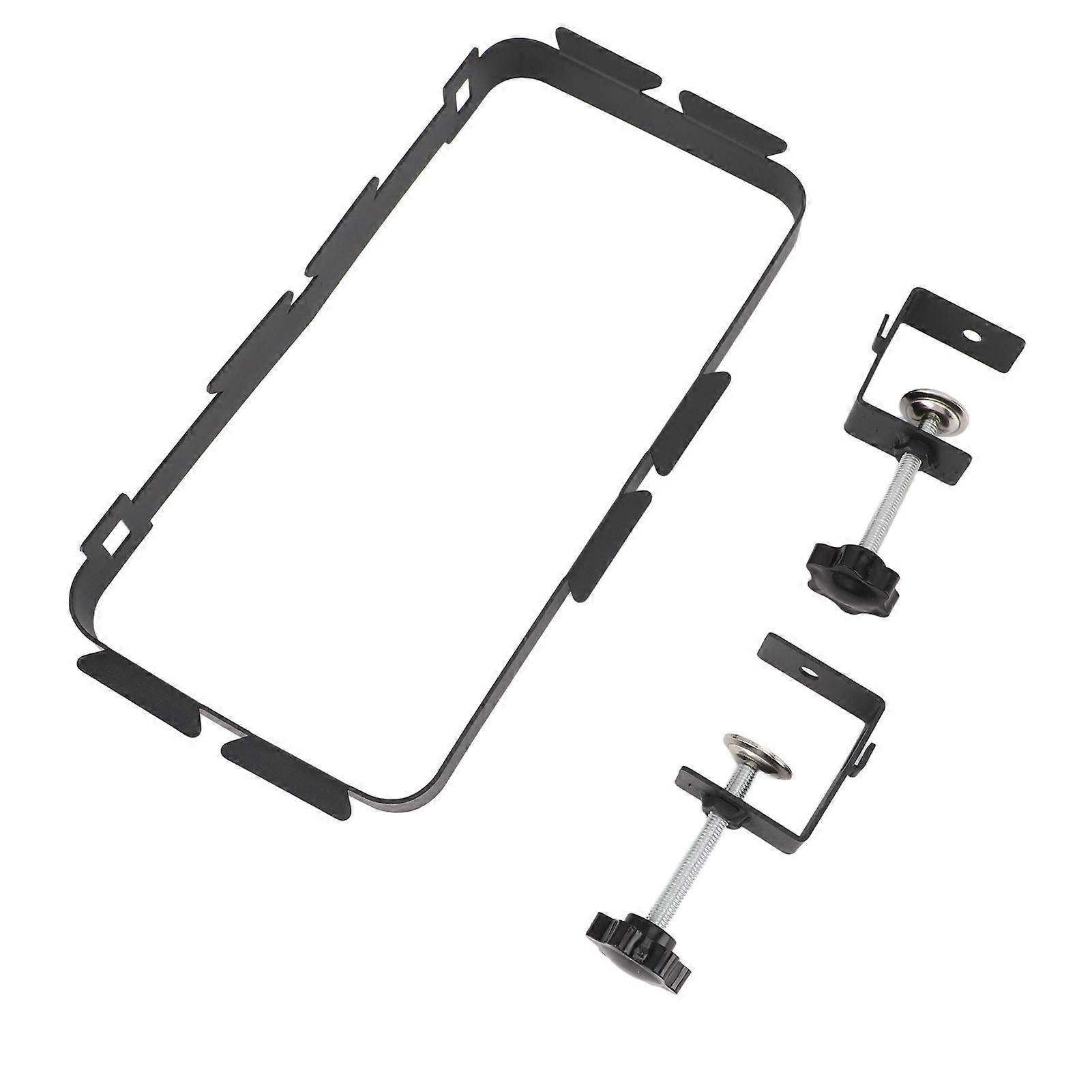 Item Type: Trash bag holder rack <br>Material: Carbon steel <br>Weight: Approx. 572g / 20.2oz <br>Features: Adjustable clamp, elastic band, easy install <br>Holder Size: 30x15cm / 11.8x5.9in <br>Clamp Space: 5.5cm / 2.2in(maximum)<br>1、Enhanced Stability: Featuring a more stable arch clamp and a wide metal carbon steel trash can which is more robust than the wire type. It can support up to 5KG weight. <br>2、Adjustable Clamp: Our camping trash bag stand boasts an adaptable clamp that can securely affix onto tabletops or desks 0 to 5.5 cm thick, meeting all your needs. <br>3、Bag Compatibility: The hanging hole of our waste bag hook is designed to accommodate different sizes of garbage bags, and comes with a rubber band for better fixation (trash bag not included). <br>4、Portable Design: This compact trash bag holder can be disassembled, allowing easy transportation for camping, kitchen, picnic and many other scenes. <br>5、Wide Application: Ideal for use in the kitchen, cabinets, garden, outdoors and even camping; It can also double up as a tabletop extension for holding snacks or fruits.1 x Trash Bag Holder Rack Set(14 Parts)