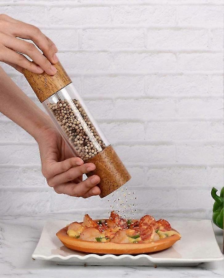 Wooden Shakers With Adjustable Ceramic Core - Premium Acrylic Salt And Pepper Grinder