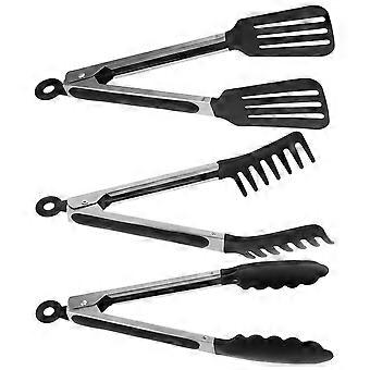 Cooking Tongs Fish Spatula Non Stick Kitchen Tongs Set for BBQ Baking Buffet Pasta Cooking 25.00X6.00X5.00cm Versatile Use 3Pcs