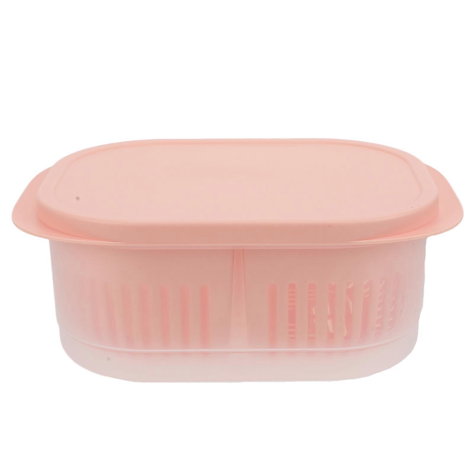 Air Tight Food Storage Container Pink Rectangular For Cooking Preparation 22.8X15.8CM Fruit Washing 1Pc