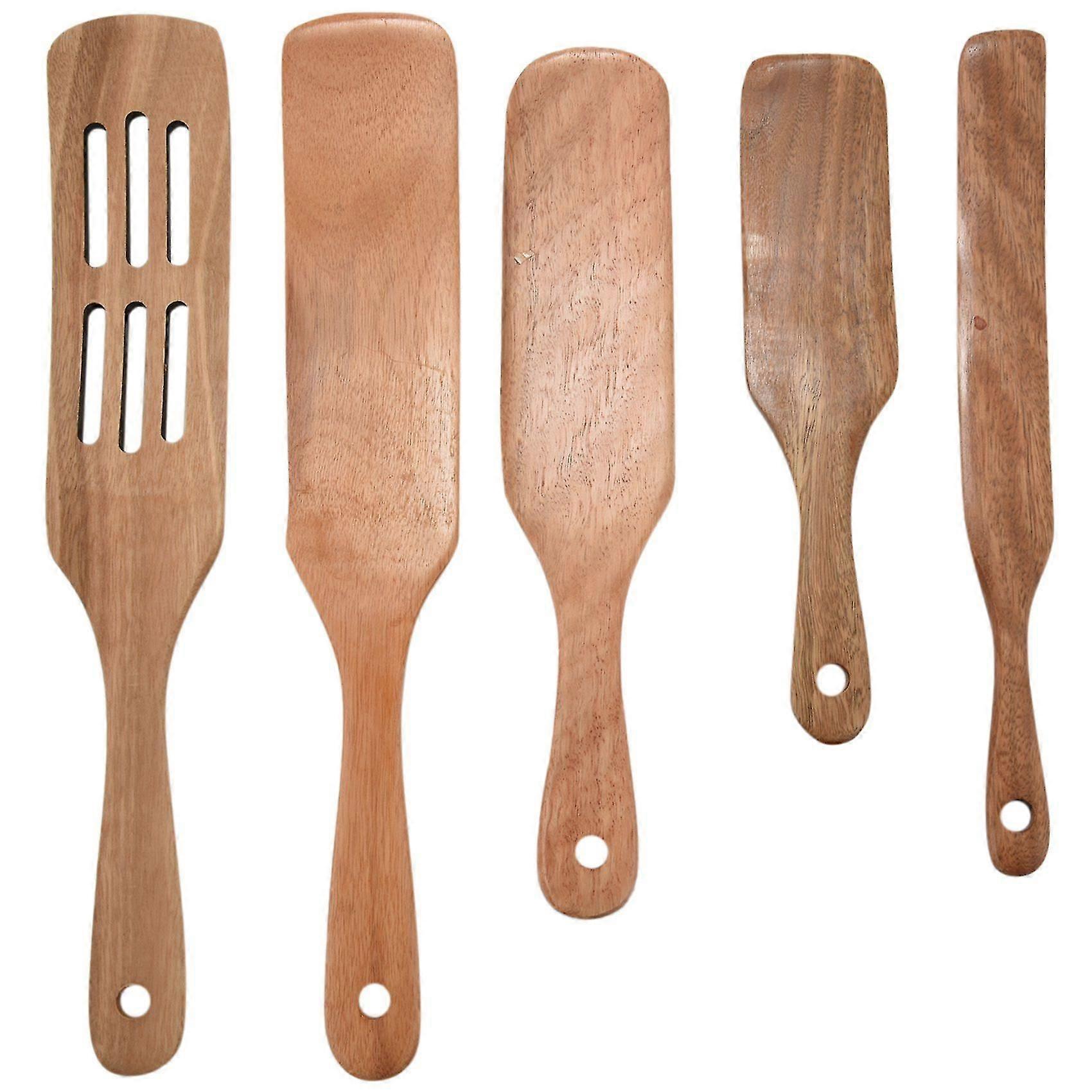5pcs Wooden Spatula Set Wood Spoons For Cooking, Spurtles Wood Kitchen Natural Teak Utensils
