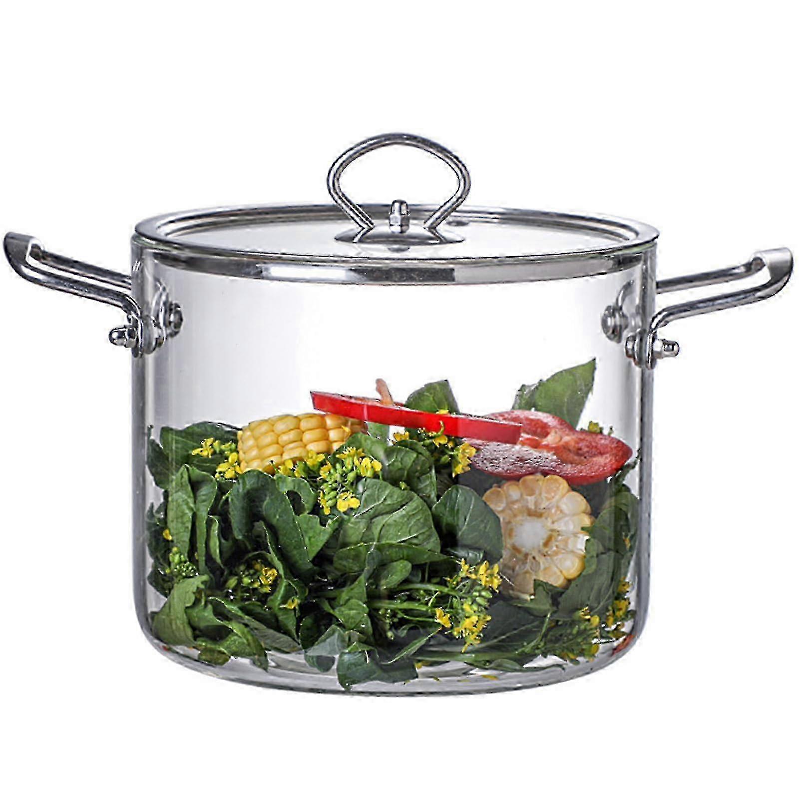 Glass Saucepan for Cooking, Clear Borosilicate Glass Stovetop Cooking Pot with Lid and Steel Handle, 4.5l