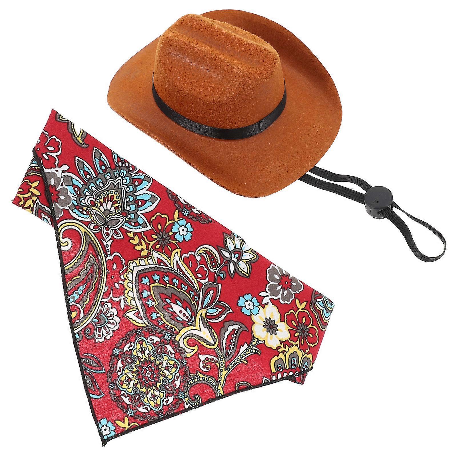 Adjustable Cowboy Hat Styled Pet Accessories with Absorb Saliva Towel for Dogs and Cats Great for Holidays and Parties 2 Pcs