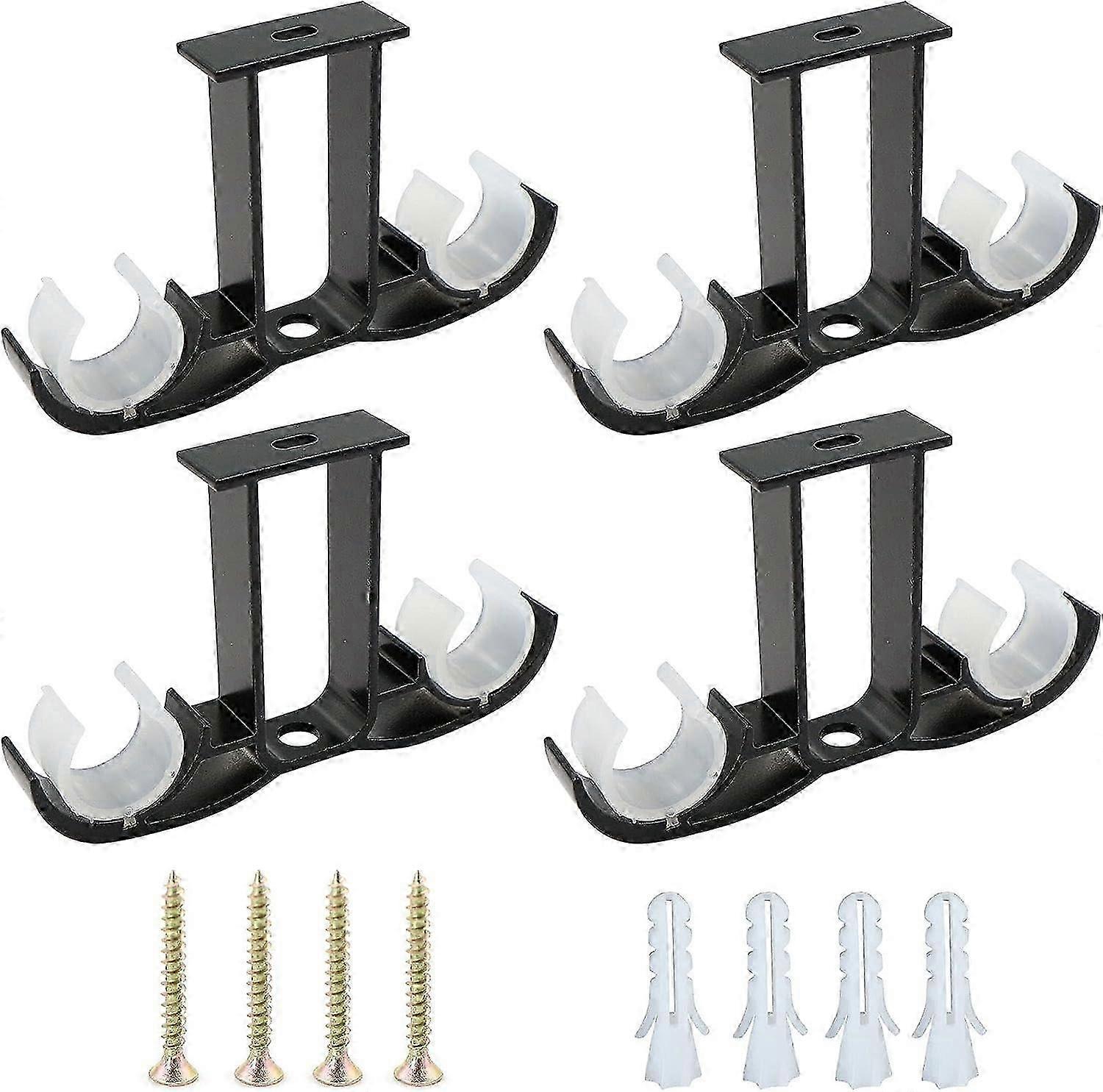Adjustable Curtain Rod Brackets - Wall Mounted Hooks for Curtain Rods (Pack Black)