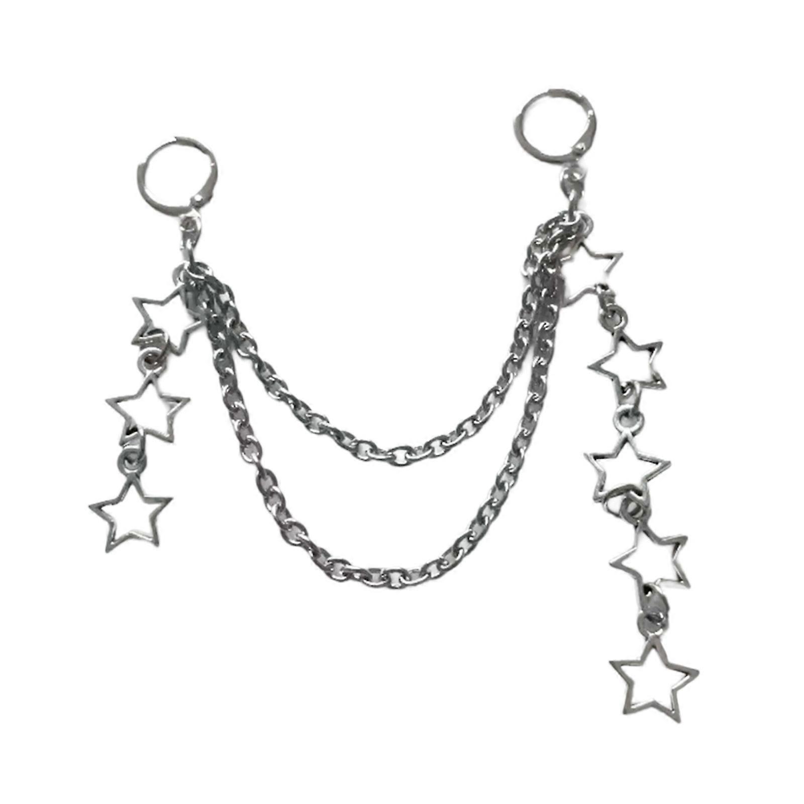 Fashionable Star Pendant Earring Five Pointed Star Tassels Ear Drop Punk Style Ornament Stylish Ear Rings for Women