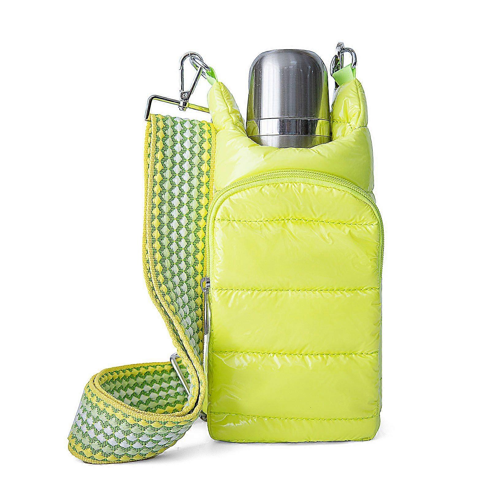 Down Cotton Water Bottle Bag with Adjustable Strap Double Zipper Pockets Waterproof Outdoor Hiking Travel Drinking Bottle Holder Carrier Storage Pouch
