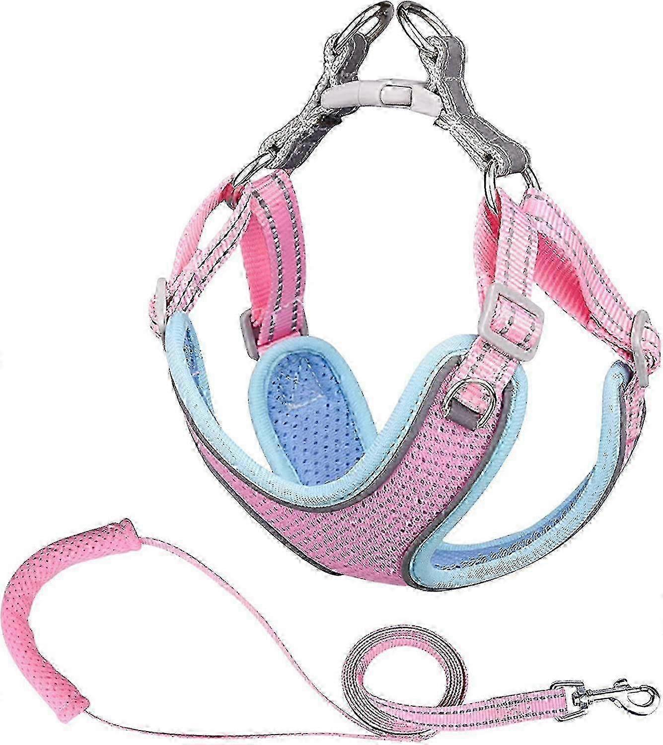 Adjustable Soft Air Mesh Dog Harness & Leash Set - Tension-Free Breathable Vest with Reflective Features for Small to Medium Pets