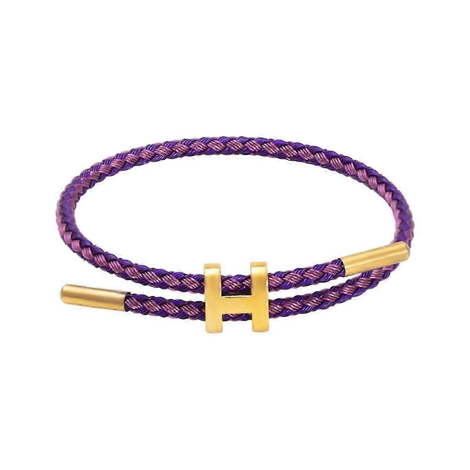 Women's Stainless Steel Wire Bracelet With Adjustable Design And 18k Gold Plated H Buckle, Perfect For Daily Wear Slightly Purple -hk628