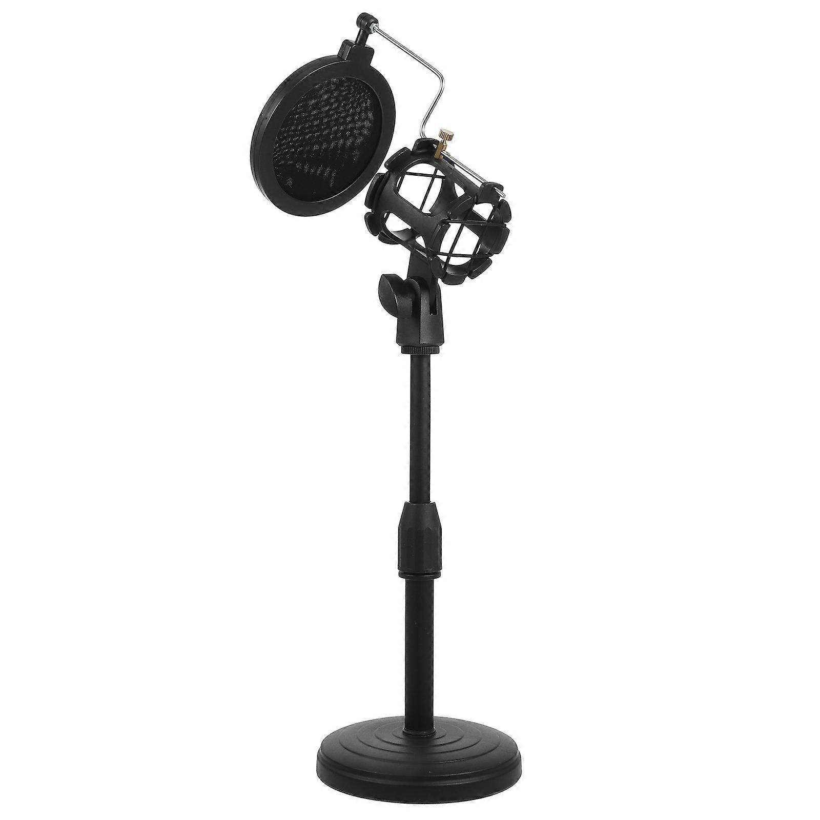 Adjustable Desktop Mic Stand with Non Slip Base & Detachable Clip Filter Durable Design for Home and Stage Use Black