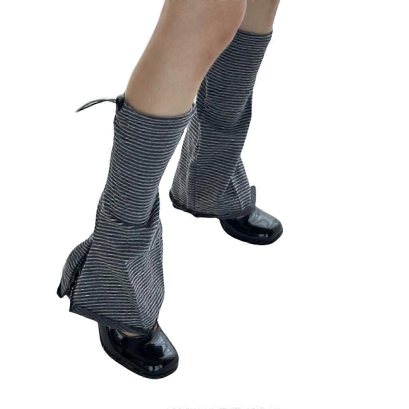 Women Korean Leg Warmers with Adjustable Drawstring Flared Long Socks Striped Split Baggy Loose Foot Covers Streetwear